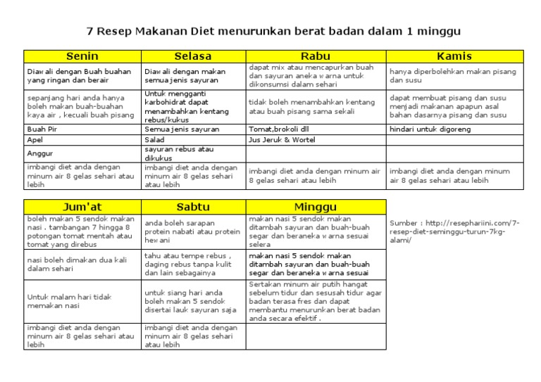 7 Resep Makanan Diet Menurunkan Berat Badan Dalam 1 Minggu Pdf