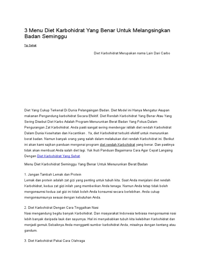 Cara diet karbohidrat yang benar. Buah yang sebaiknya dihindari saat melakukan diet yang benar. Seperti yang sudah disebut diatas diet karbo bukan berarti tidak makan karbohidrat sama sekali. Karena diet sendiri bisa dilakukan untuk menurunkan berat badan untuk menaikkan berat badan dan bisa juga untuk menjaga berat badan agar tetap ideal.